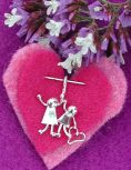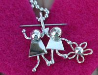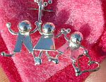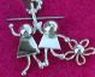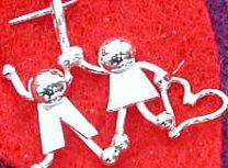 Above see a collection of two child charms. Sterling with gold fill object shows up very well. Any combination of boy and girl, even one upside down! Holding a simple object, the price is $35. ($15 for each person plus $5 for a tiny heart, flower, etc.) For more custom objects inquire.
