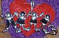 Three little people in a row. You must specify the order (Here is is boy girl, boy.) If you tell me the ages, I can represent them according to size This piece is $50. ($15 for each child, $5 for the heart)