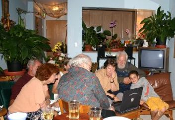 On the right is Rick's brother, Phil, to his left, Kathy's happy mother, Mary, to the left of us is Kathy's sister Maureen, and to her left Kathy's son Timothy, his son Dylan. To his left is cousin Arnold Borker.