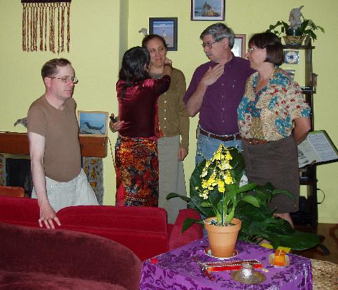 Friends David, Lisa, Peter, and Betsy in our Pasadena home.