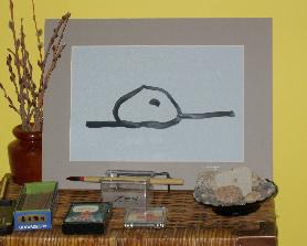 At the entryway of our home, a 'zen board' where you can paint a picture that disappears in 5 minutes. We cheated and took a photo of David's farewell painting.