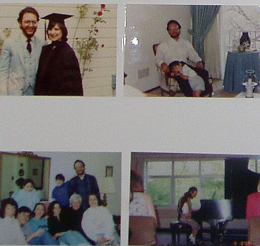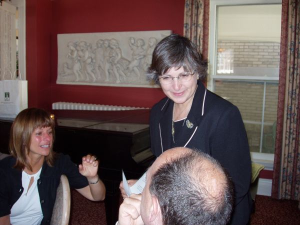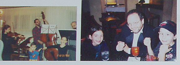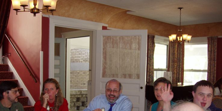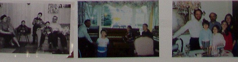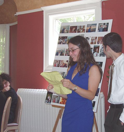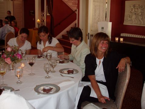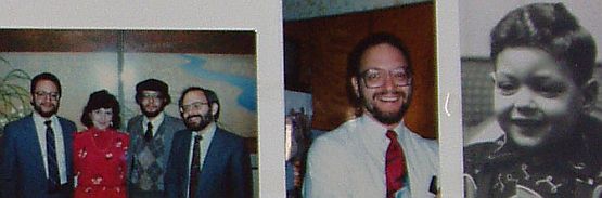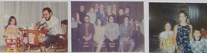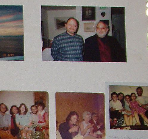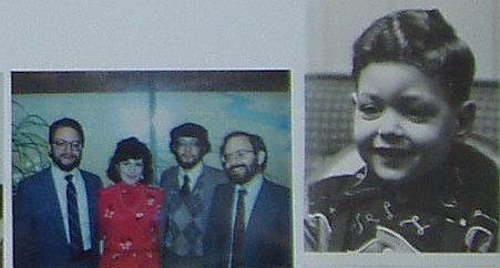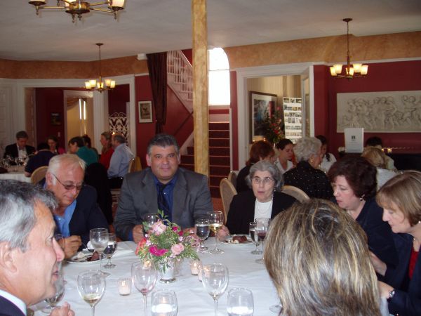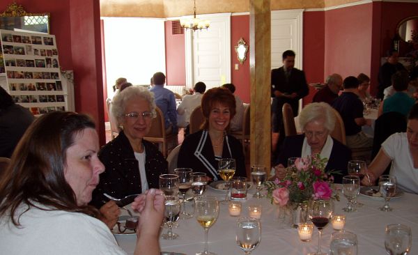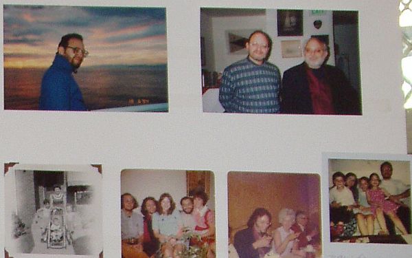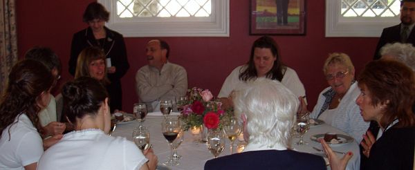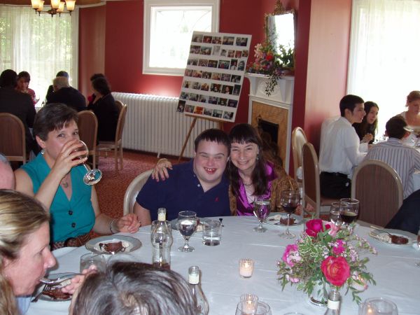 Below, you can see one of the photo boards over the heads of Kathy and Linda and Bill's son Jeremy. Linda Foster is on their left.In the background to the right you can see Richie Wilson, Steve and Georgie's son (profile) at the table of young people.
