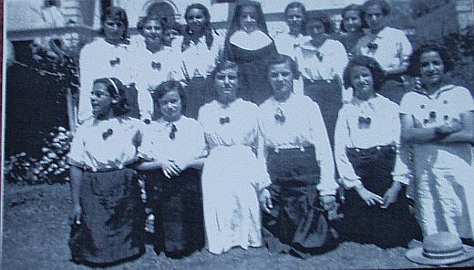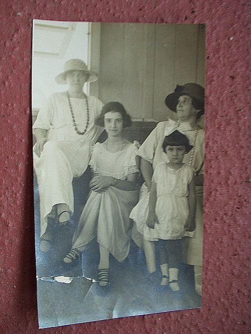 In the above photo, Mary is front row, right; 'Nana,' Mary's mom, is behind her in the dark hat, elegantly looking away, accompanied by two friends.