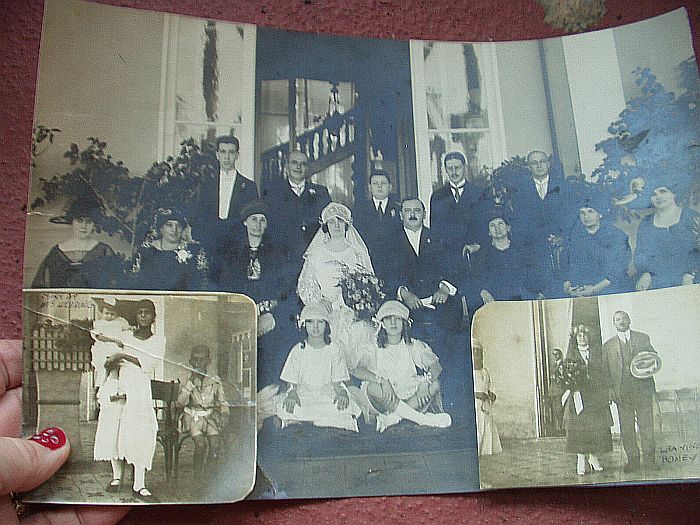 Row in front of them: Mrs.?; Virginia; Cuca; the bride, Emma; the groom, John; Mary's grandmother