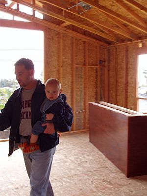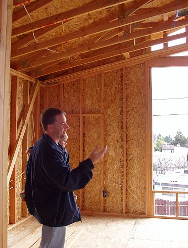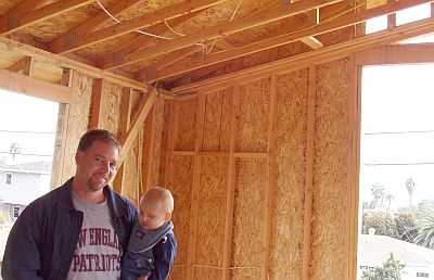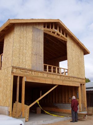Well, this is not exactly Tim's house... at least not yet. It is his new garage and upstairs office, under construction in his back yard!.
