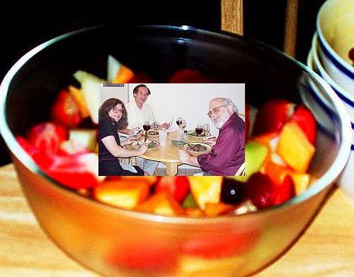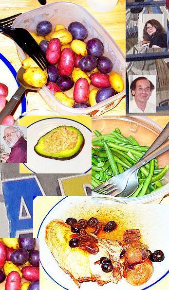 Olive Chicken, colorful steamed tiny potatoes and fresh green beans, were followed by a happy finish in a fruit bowl, and lots of wine and smiles...