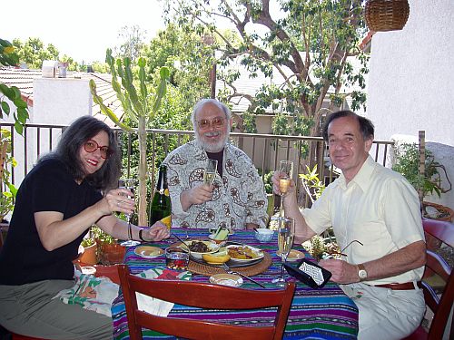 Ah, it looks and feels like California! The rain had stopped, the air was warm, and Kathy had moved a table back out on the balcony. A champagne toast to our wonderful times together in Pasadena and Santa Barbara. Michael and Marjorie would leave in two days to go back to the UK after a year of travels to various universities.