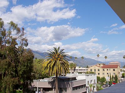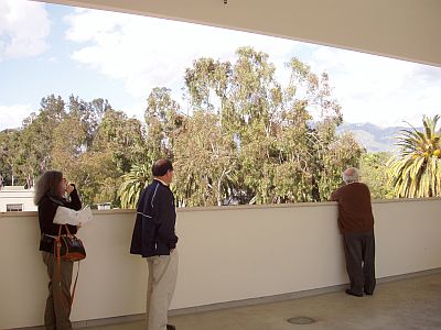 It was hard to leave our balcony lunch, but we were off to the Pasadena Museum of California Art, where another balcony gave us this view of Pasadena!