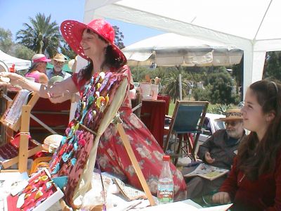 While Doug and Rick were doing that, Kathy was doing this. Well obviously, Rick wasn't always doing that. Sometimes he did this. (Doug took this photo of Kathy selling her work at the Art Festival at the Old Mission in Santa Barbara on the 4th of July. Helping her that day, in the foreground, is niece Sara, daughter of Kathy's sister Maureen.)