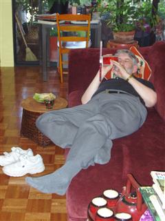 The picture of relaxation, trusty kaleidoscope in hand, Doug looks forward to the rest of his visit. (Kathy photo)