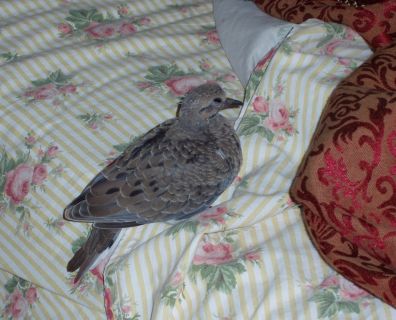 When it landed on our unmade bed, Rick threw a hat over it, put a plate under it, and evicted it. Then it flapped and fell behind some plants. We were worried. Was it OK?
