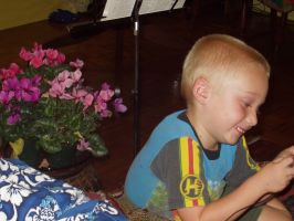 Dylan set to work untangling cables and finding new connections. He is growing fast, and has the best smile!