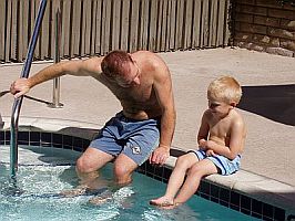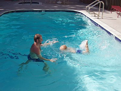He loves our pool in the central condo area, and he and Tim were busy swimming.