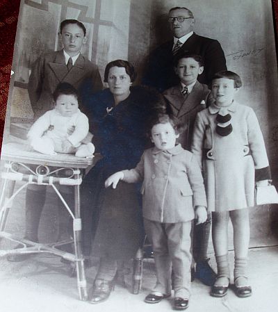 Here, John Gatt is in the back right, and his wife Emma near center, next to the baby, Edwin. On the far right, front is Lea, front center is Louis. Back left in the oldest son John. Behind Lea, and in front of his father, smiling, is Sydney.