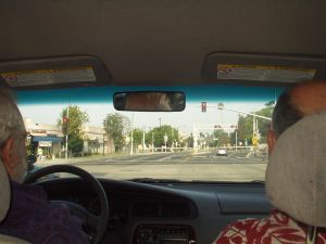 We took our friend Arjeh,to our home in Santa Barbara last weekend. Before we got on the freeway, we were stopped by a train. This is the new "Gold Line" from Pasadena to downtown LA. (Not shown, but you might be able to see the tracks and gates.)