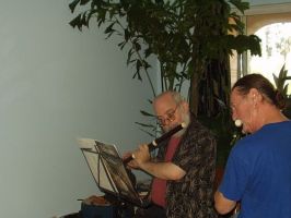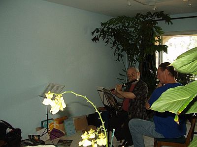 Our first musical visitors were Nina and David Shorey. You remember them because we visited them and their houseboat in Amsterdam. Now, they have moved to Marina del Rey. Both are known in the historical flute world, and skilled in flute restoration. Rick and Harry have both bought flutes through David.