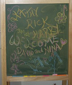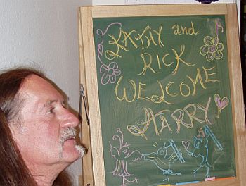 When Harry visits us from San Francisco , all the flutes come out, and flute players, music lovers and lovers of food and good times are lured irresistably to our doorstep. We had to change our welcome sign so many times it got all smudgey, but our homes in Pasadena and Santa Barbara resonated with beautiful sounds, fragrances, and good taste, both musical and culinary!! Later we'll tell you about the food, but right now, we can see Harry is deciding which flute to play.