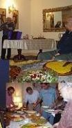 (we haven't found any since); our carpet, now in our living room, also from Isfahan; a Persian ney flute player giving Rick the gift of as ney in Isfahan, accompanied by two of our hosts; a dinner at Reza Khosrovshahi's home in Tehran; a dinner at the home of Nanaz Fathpour's family in Tehran; Rick playing flute at the dinner party, Reza Khosrovshahi listening.