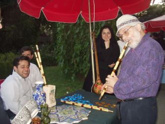 A PRIVATE CONCERT — Rick was asked to play at a party at the home of the Associate Director and Head of the School of Mathematics at IPM, Reza Khosrovshahi. Rick said he would play only if he was asked three times, and this requirement was soon met. Rick played the beautiful 'Roslyn Castle' Nicholson's 1821 arrangement of a Scottish air. Rick played on a circa 1870 Euler 9 key flute that he had decided was a good traveler. The piece met with happy approval, and the floating melody seemed somehow Persian... In the Scottish 'Banks of Doon' with words by Robert Burns, Kathy's voice blended with Rick's Folker's and Powell baroque (one key) flute copy. Also the 'Yew Tree,' another Scottish song spoke to all, questioning 'what the future would hold'.