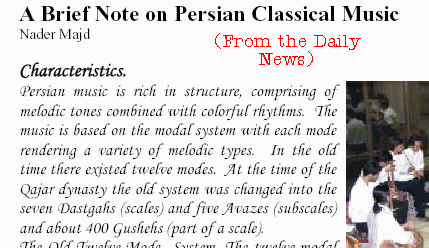 A CONCERT OF TRADITIONAL PERSIAN CLASSICAL MUSIC — The formal entertainment the next evening (Tuesday) was a public concert at the IPM