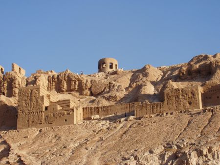 We were then, no sooner down the stairs, and thinking about a nap, than we were off to the fascinating 2,500 year old Zorastrian fire temple ruins. Zorastianism was the main religion in Iran until the Arabs brought Islam. It was one of the first religions to postulate an all powerful, invisible god, and kept fires 'eternally' burning in their temples. As tired as we were, we wished we had time to climb up and get closer to the top, but our tour guide had something else on his list.