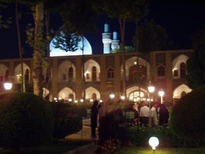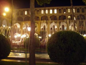 By this time, it had gotten dark! And we went to the vast and beautiful courtyard gardens of the Abbasi Hotel for tea. Fountains, and lights and a 'romantic' atmosphere filled the air. There were hundreds of people lounging and talking and being served tea.