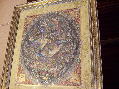 Upon entering, we found rooms full of glorious color, rich with frescoes and paintings all above and around us. During the 18th century invading Afgans covered these with plaster and whitewash to show disapproval of the sumptiousness. And we were told that during the Islamic revolution caretakers and students protected them by claiming they were metaphorical. Most have recently been painstakenly restored, so our viewing was a rare one!