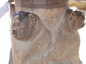 It was hard to leave this treasure house, now museum of beauty. Shah Abbas had especially good taste. We were told he also had 400 wives. We do not know if this is metaphorical. In days past the pool water passed through the mouths of these lions as fountains which form the base of decorative pillars that are nearby. Now they are dry, to protect the foundation of the palace. We sincerely hope that this art treasure will endure.