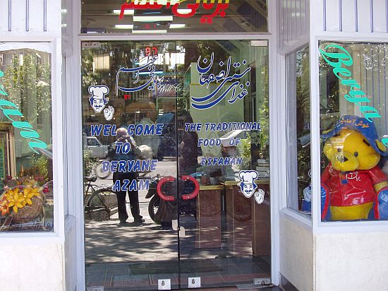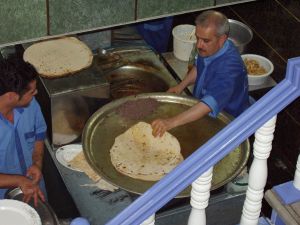 It was a special Isfahani dish, a light cinnamon and spicy ground mutton with walnuts, wrapped in a large round flatbread, with various accompaniments. We had not had anything like it during our stay in Tehran.