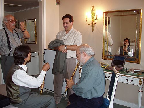 It was then that Majid Rahnema, the fine ney player came to visit, to give Rick a flute, and a lesson in our hotel room, pictured here.