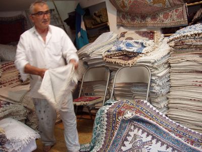 Now, the only difficult thing about this trip was that we had not yet gotten to the bazaar, and time was running out... It is a huge market, comprising a maze of artist's workshops and galleries, most streets organized by crafts. We did buy a rug and some miniatures, but we could have spent hours wandering these interesting shops. Hope to come back someday...