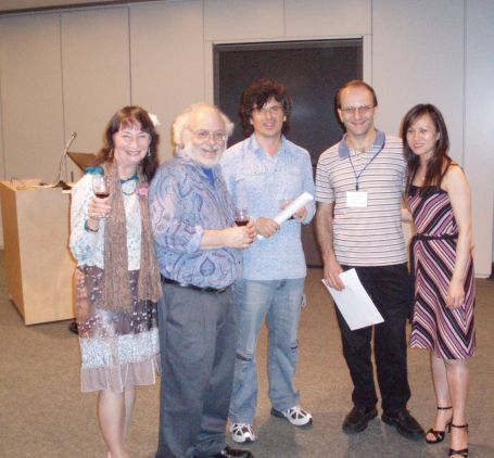 Rick with some friends who are speaking at the conference, Marco Burati, from Italy, Jonathan Jedwab (center) from Vermont and his fiancé Jenny, and Richard Gibson from Vancouver.