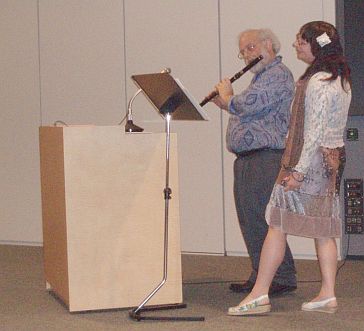 Rick played two Celtic songs, one accompanied by Kath, singing "Easy and Slow". She also accompanied some of the Klezmer music with percussion (a small Japanese percussion instrument brought from home).