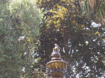 It was a very hot day, but this one bird found the coolest spot in the gardens. (The bird on top of the fountain is a real one.)
