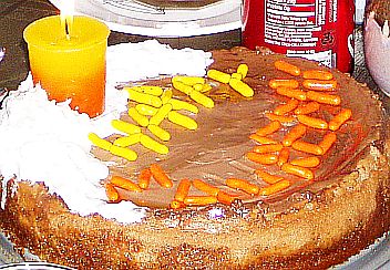 This time, after some people were finally a little tired of birthday pumpkin cheesecakes, Kathy improvised a new one (a surprise) in honor of Maureen (who loves chocolate)! Happy Maureen!