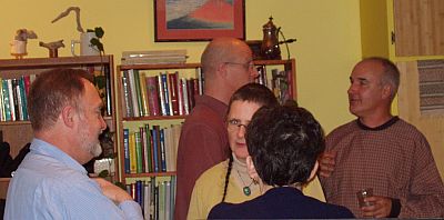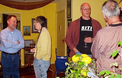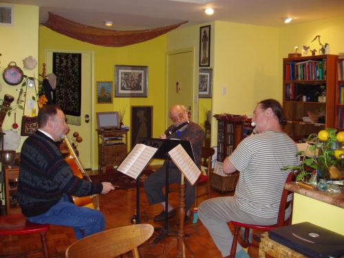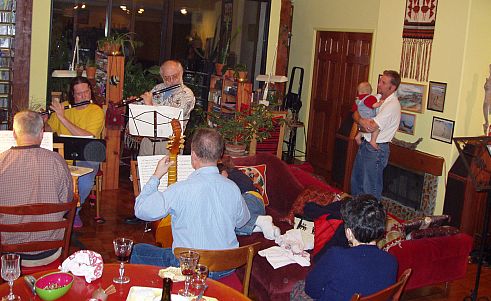 Robert's wife Antoinette (second from left, above) teaches computer art at UC Irvine. She is talking to our friend Phil Schlosberg at this musical gathering. Phil is a lawyer as well as an accomplished gambist. Many of our guests were meeting for the first time.