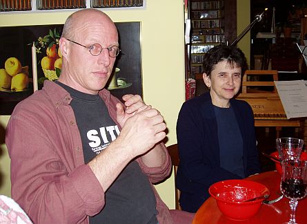 The music was so inspiring that the listeners even began playing invisible instruments! Above is Robert Allen, a friend and drama teacher at Cal Long Beach. Next to him is Kiki Schlosberg a friend and wife of Phil Schlosberg (see below). She teaches kindergaten in Los Angeles.