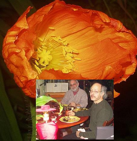 Phil and Rick look skeptical because they are about to be swallowed by a giant flower...really it was a good dinner...and Phil enjoyed his meals with us!