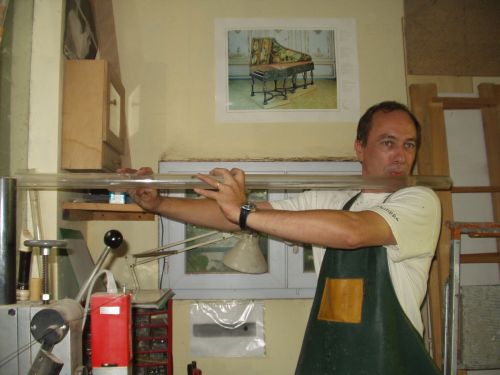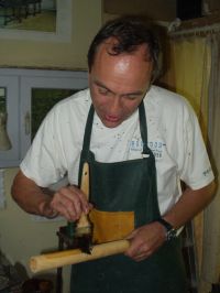 Actually, first we had coffee in French bowls and bread and jam, and then flutes! (Here he is in his workshop. He makes his own flutes.)