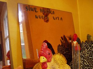 We came home to Philippe's in the dark, and fell quickly asleep. The next morning, Philippe made us flutes for breakfast... he does this for himself and his friends! This is the experimental flute de jour, a plexiglass renaissance double bass in 'd'.