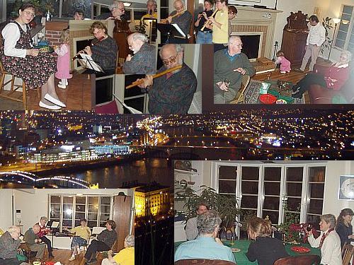 In the photos above you can see the potluck dinner gathering after Rick played with recorder and flute ensembles at Martha's home. Professor Stuart Hastings is a part of these groups. The math department faculty came too. So it was an unusual and friendly