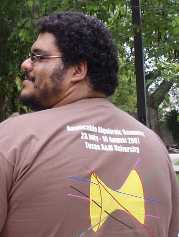 This is Frenando Pinero, graduate student of Professor Janwa, one of the sponsors of our visit. He just got back from a Math conference at Texas A&M University. I was sentimental about his shirt since my son Tim was born while I was attending Texas A&M, taking Shakespeare and Modern Poetry classes there... don't ask me why. Fernando says he might be able to get us a botanical tour of campus with someone who can name all the varieties of fascinating plant life so profuse here. Rick will be giving some lectures on his request.