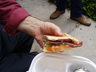 The law student's lunch place on this cmpus is always best. Last trip I learned to make plaintain soup here. One thing we like that's different is that all sandwich breads are squashed in a waffle iron to toast and take all the air out...so they're thin and crunchy.