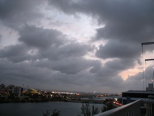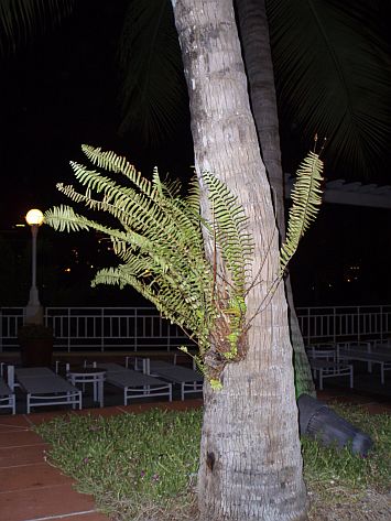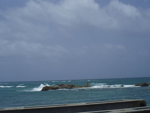 Returning here, where my lines feel vinelike over the lush landscape and in keeping with tropical style, we feel at home. The threatening hurricane, not so threatening here... gave us an excuse to "hide" in our hotel, venturing out to see the big waves and feel the occasional downpour. The inner begins to mirror the outer, as lines grow longer and last night the inevitable reward. The long sentences of the tiny invisible (to us) tree frogs who sing all night like sleepless flocks of birds wherever there are trees. We heard them familiarly roaring... loader than any human conversation. They settle in your heart and many here say they no longer can hear them. (I am sure they feel them.) For when people leave here, they cannot sleep for want of the coqui sound. Gradually here the nameless begins to identify itself, the large round fruits in the palms call themselves coconuts... but there are endless mysteries as in any new place. And for those who live here, as with anything familiar, no names are needed. So many stare at my questions for want of words. Names may be only for holding in the heart after the leaving?