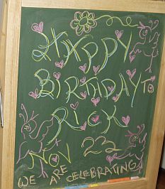 There was a lot of love involved in Rick's birthday, and you can see it here. Kathy arranged an event that Rick would definitely enjoy, the opportunity to play chamber music in our Santa Barbara home with friends. Thanks to the 'miracle' of both our dear friend Daniel's presence (he played in our wedding concert, and performed our marriage ceremony) and a keyboard instrument in our house (a virginal built by and rented from our friend Curtis Berak) our sweet Santa Barbara friends and family were treated to this very special concert. Blissfully listening below, along with Kathy, are friends Hyla Fetler and Tracy Fernandez. (photo by Nan Evans)
