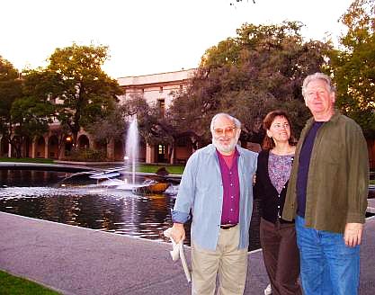 A wonderful phone call announced the presence, not far from in our fair city, of our very favorite friend and flutemaker, Scotsman and Mendocino resident, Rod Cameron and his sweet wife Kathleen. Never was there a happier circumstance, as we gathered our wits about us and welcomed that very night to our humble but cheery abode... those two dear beings who grace the world with their presence and make it a far better place. Here they are meeting Rick by the reflecting pool after his teaching day at Caltech.