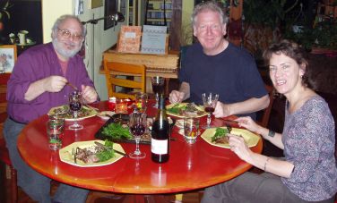 Rod said our home smelled like Scotland while Kathy prepared the "national dish". Lamb. Rod and Kathleen loved Kathy's version of almond-mustard rack of lamb. Wine and good conversation were the best sauce!