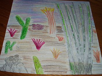 When Kathy and Rick woke up at the beginning of this day, they found that Sean had slipped this drawing, obviously a picture of yesterday's visit to the Huntington Gardens, under our bedroom door. What visions will dance in his head tonight?