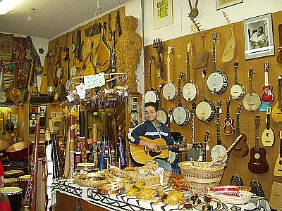Afterwards, we went to a favorite shop in Claremont, where instruments from all over the world have congregated. Rick bought Kathy a Vietnamese Dan Mo...a complex Vietnamese percussion instrument. (not pictured). Sean looks happy in this world.