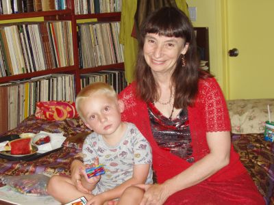 Here is a happy grandma, reading a story. Dylan took this photo.